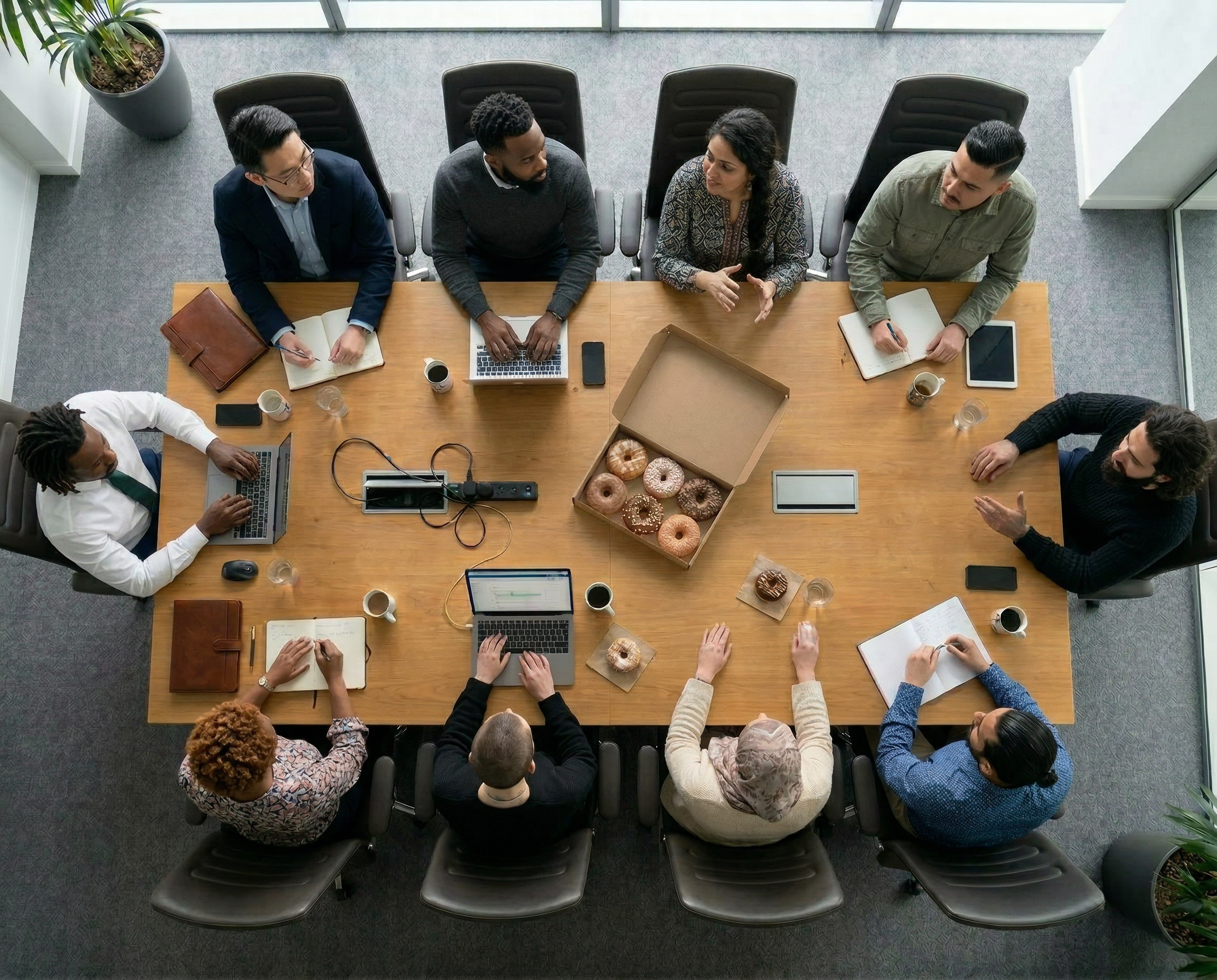 Show up, grab a coffee and a donut, and start making connections before the meeting officially begins. This is where real relationships get built.