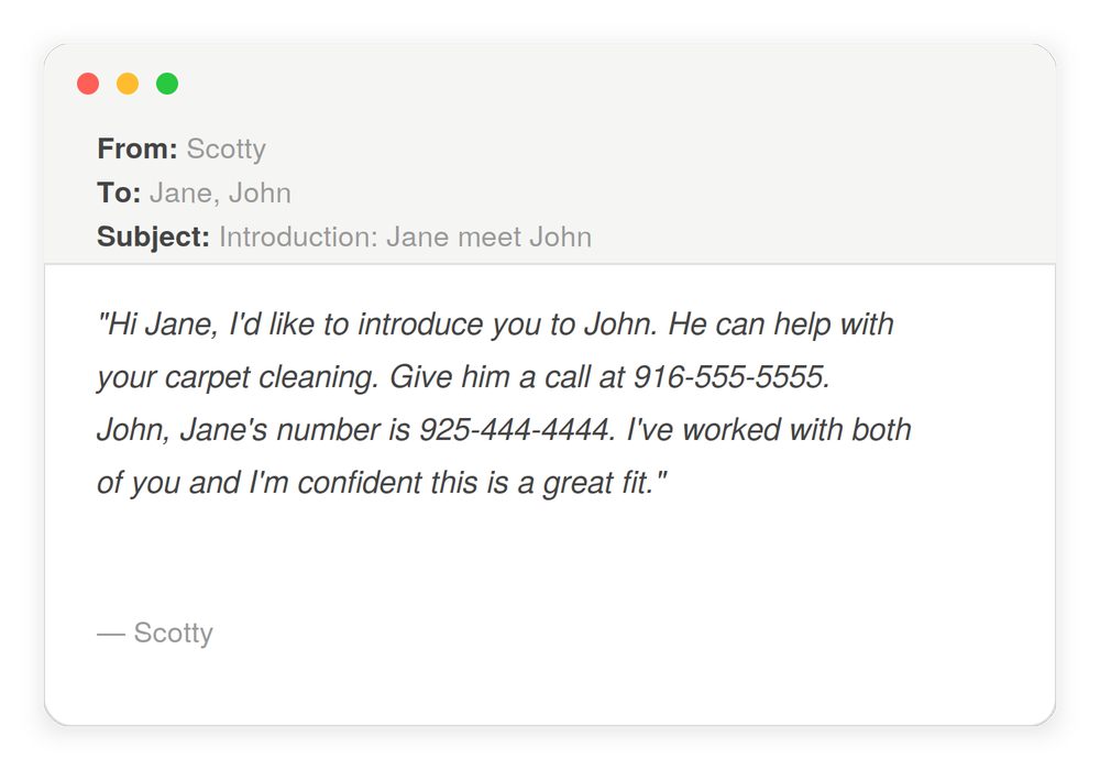 We don't just pass names around. We take the time to understand each other's services so every referral is the right one.